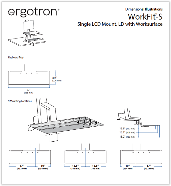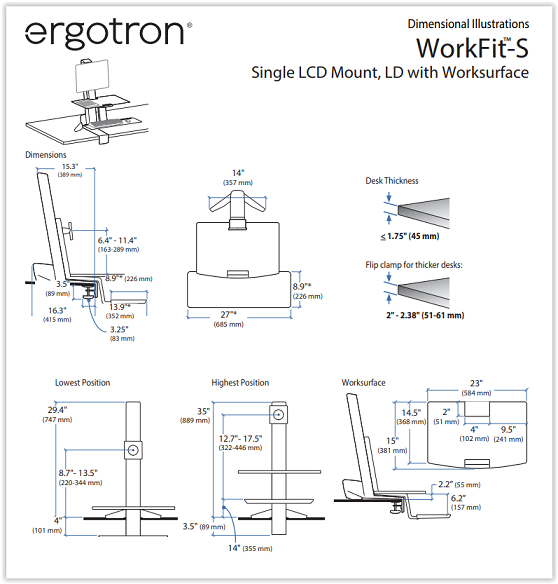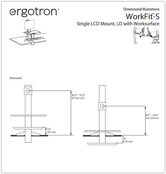 זרוע נצמדת לשולחן עמדת עבודה ישיבה עמידה למסך מקלדת ועכבר ארגוטרון Ergotron E-33-350-211 WorkFit-S Single LD With Worksurface