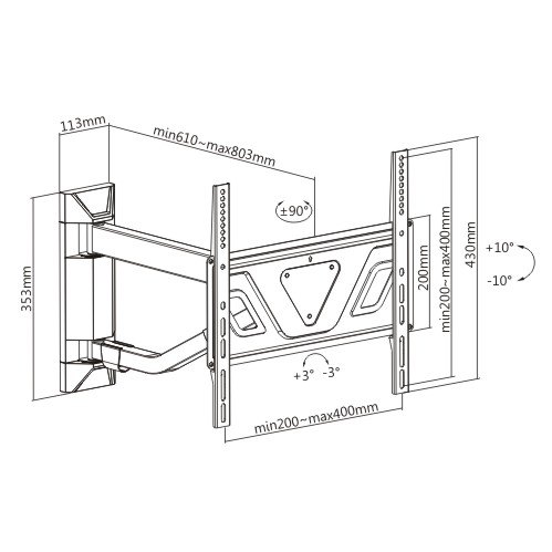 זרוע דו מפרקית לטלוויזיה גודל מסך עד 80'' ומשקל עד 50 קילו Lumi LPA60-443 TELESCOPING ARM FULL-MOTION TV WALL MOUNT