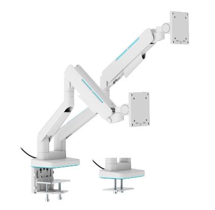עמדת עבודה שולחנית הידראולית מתכוונת ישיבה עמידה לנשיאת 2 מסכים גדולים מקלדת ועכבר בצבע לבן לומי Lumi DWS28-02NW Gas Spring Scissor-Lift 950x400mm Desktop Sit-Stand Workstation White