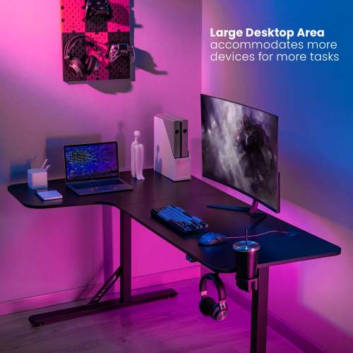שולחן מחשב גיימינג זוויתי ר פינתי מעוקל איכותי ומקצועי לחוויית משחק אחרת מבית לומי Lumi GMD09-2 L-Shaped Gaming Desk Not Only for Gaming but Multi-Tasking