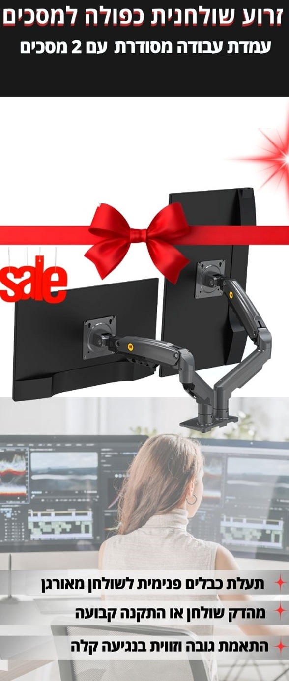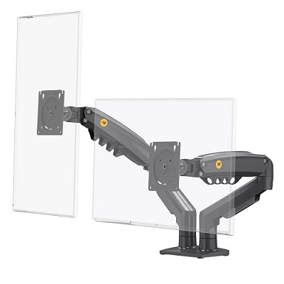 זרוע שולחנית הידראולית דו מפרקית לשני מסכי מחשב נצמד לשולחן (אפשרות הברגה) לגודל מסך 17 עד 32 אינץ' עד משקל 9 קילו לכל מסך כולל כיוון גובה NB North Bayou F-160 Gas Strut Desktop Mount