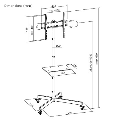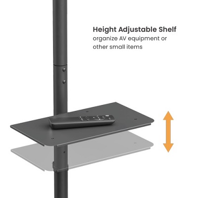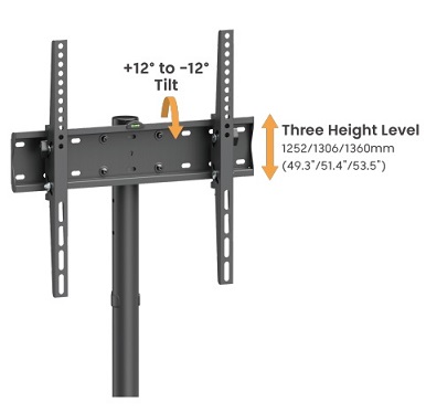 מתקן מעמד סטנד נייד לטלוויזיה כולל הטייה עם גלגלים ומדף למסכים 32 אינץ' עד 55 אינץ' משקל נשיאה 35 קילו לומי Lumi T1041T Economy Single-Column Steel TV Cart 1252-1360mm