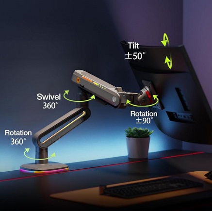 # מתכוונן - זרוע צג הגיימינג תומכת בכוונון גמיש של זוויות, זקוף 260 מ"מ, סיבוב 360 מעלות,