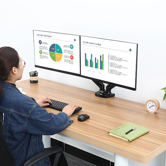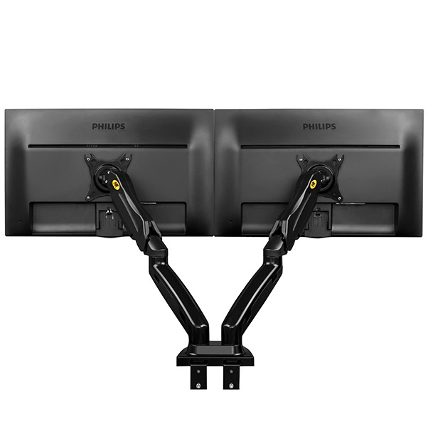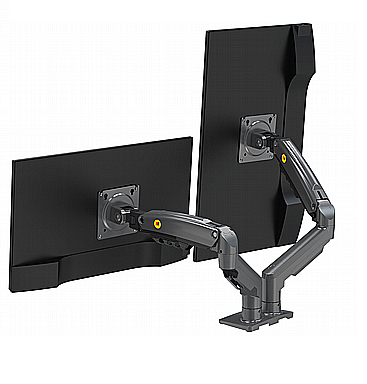 זרוע שולחנית הידראולית דו מפרקית לשני מסכי מחשב נצמד לשולחן (אפשרות הברגה) לגודל מסך 17 עד 32 אינץ' עד משקל 9 קילו לכל מסך כולל כיוון גובה NB North Bayou F-160 Gas Strut Desktop Mount