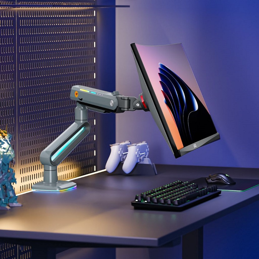 זרוע שולחנית דו מפרקית הידראולית למסך מחשב גדול 32 אינץ' עד 60 אינץ' משקל עד 20 קילו כולל תאורה North Bayou NB V7 Hydraulic Double-Jointed Desktop Arm for Large Computer Screens 32 Inches to 60 Inches Weight up to 20kg Including Lighting