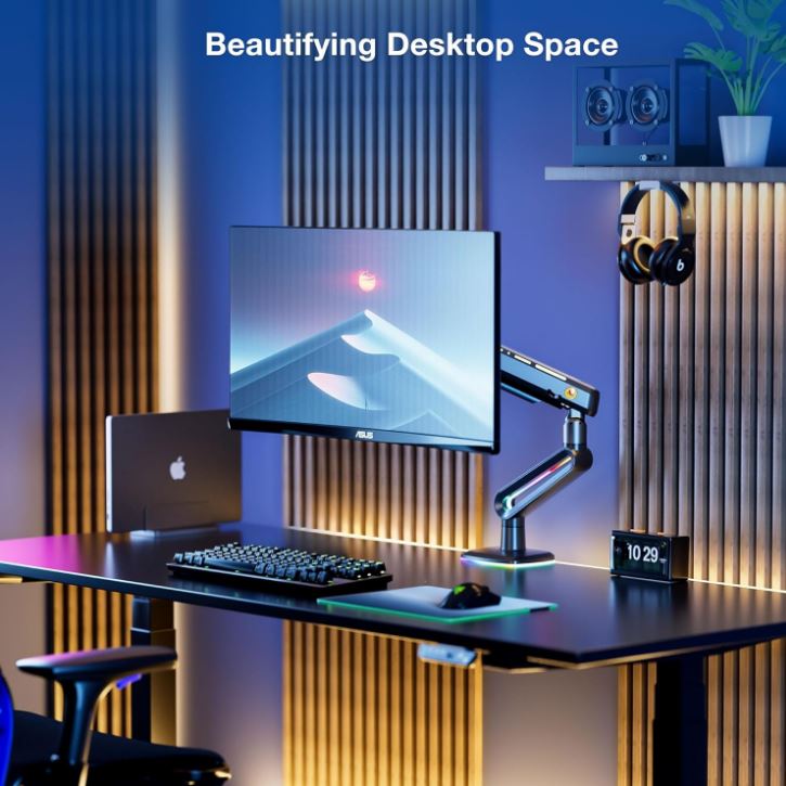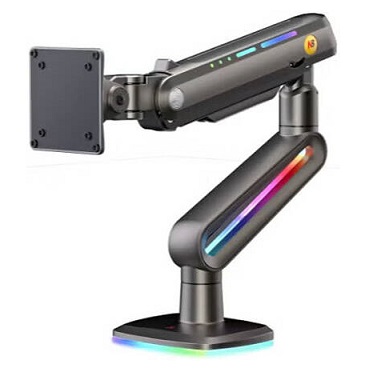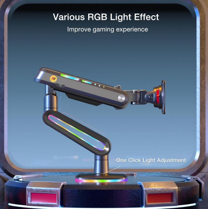 זרוע שולחנית דו מפרקית הידראולית למסכי גיימינג ומסכים כבדים כולל תאורה 32 עד 60 אינץ' משקל עד 20 קילו אורך עד 62 ס''מ גובה מירבי 49 ס''מ North Bayou NB F6-G RGB Gaming Monitor Arm Hydraulic Double-Jointed Desktop Arm 32 Inches to 60 Inches Heavy Duty Weight up to 20kg Matte Charcoal