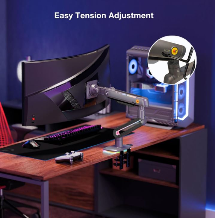 # מתכוונן - זרוע צג הגיימינג תומכת בכוונון גמיש של זוויות, זקוף 260 מ"מ, סיבוב 360 מעלות,