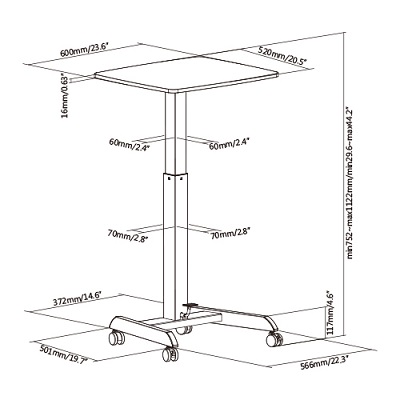 שולחן למחשב נייד מתכוונן ישיבה עמידה 752-1122 מילימטר משקל משיאה עד 8 קילו שחור לומי Lumi FWS07-2 Height Adjustable Mobile Workstation with Foot Pedal Black